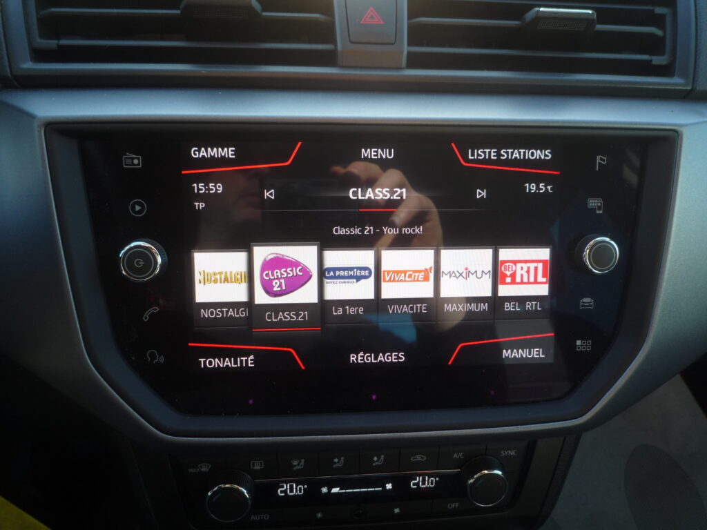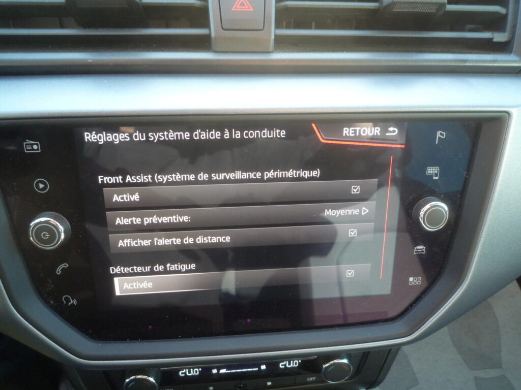Equipement : ABS / Accoudoir / Airbag avant / Airbag conducteur / Airbag passager / Airbags latéraux / Android Auto / Anti-démarrage / Anti-patinage / Apple CarPlay / Assistant au freinage d’urgence / Assistant de démarrage en côte / Bluetooth / CD / Capteurs d’aide au stationnement arrière / Capteurs d’aide au stationnement avant / Commande vocale / Contrôle de la Distance de Stationnement / Direction assistée / Dispositif mains libres / Détecteur de lumière / Détecteur de pluie / ESP / Ecran tactile / Feux anti-brouillard / Fonction TV / Isofix / Jantes alliage / Jantes aluminium / LED Phare de jour / MP3 / Ordinateur de bord / Phares de jour / Porte-bagages / Pot catalytique / Radio / Radio numérique / Régulateur de vitesse / Rétroviseurs latéraux électriques / Start/Stop automatique / Système d’aide au stationnement automatique / Système de contrôle de la pression pneus / Système de détection de la somnolence / Système de navigation / USB / Verrouillage centralisé avec télécommande / Vitres teintées / Vitres électriques / Volant en cuir / Volant multifonctions